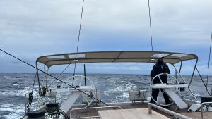 After 20 days at sea, and some pretty good weather routing between two weather systems, we arrived into a fog bound Cape Town where Alithia will be staying for some down time. This gives the crew a chance to fix the boat after a tough 6500 miles at sea which unfortunately caused some damage. We will be getting all the sails off and serviced, the boat cleaned and all the broken parts mended from the trip. While there we will be lifting her out of the water to replace the thruster door with a new improved stronger solution. We will also have the opportunity to complete repairs to the keel bulb after an unscheduled encounter with the seabed!